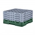 Camrack® Glass Rack, with (4) soft gray extenders, full size, low profile, 19-3/4" x 19-3/4" x 10-1/2", (25) compartments, 3-7/16" max. dia., 9-3/8" max. height, Sherwood green, HACCP compliant, NSF, Made in USA