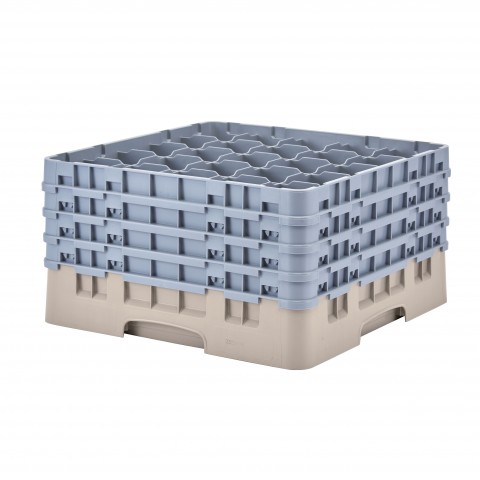 Camrack® Glass Rack, with (4) soft gray extenders, full size, low profile, 19-3/4" x 19-3/4" x 10-1/2", (25) compartments, 3-7/16" max. dia., 9-3/8" max. height, beige, HACCP compliant, NSF, Made in USA