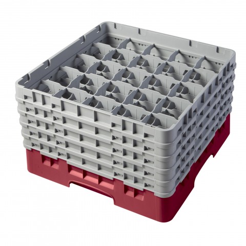 Camrack® Glass Rack, with (5) soft gray extenders, full size, 19-3/4" x 19-3/4" x 12-1/8", (25) compartments, 3-7/16" max. dia., 10-1/8" max. height, cranberry, HACCP compliant, NSF, Made in USA
