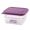 CamSquare® Food Container, 2 q.t, 7-1/4"L x 7-1/4"W x 3-7/8"H, allergen-free purple, allergen-free logo imprinted, polycarbonate, dishwasher safe, resists stains & odors, clear, NSF