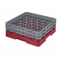 Camrack® Glass Rack, with (2) soft gray extenders, full size, 19-3/4" x 19-3/4" x 7-1/4", (30) compartments, 3-1/8" max. dia., 5-1/4" max. height, cranberry, HACCP compliant, NSF, Made in USA