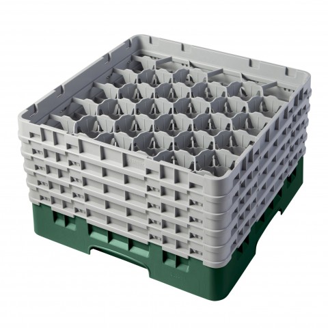 Camrack® Glass Rack, with (5) soft gray extenders, full size, 19-3/4" x 19-3/4" x 12-1/8", (30) compartments, 3-1/8" max. dia., 10-1/8" max. height, Sherwood green, HACCP compliant, NSF, Made in USA