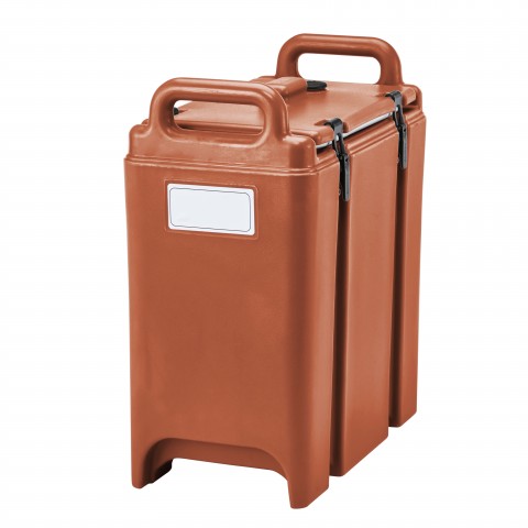 Camtainer® Soup Carrier, 3-3/8 gallon, 9"W x 16-1/2"D x 18-3/8"H, no spigot, insulated plastic, brick red, NSF