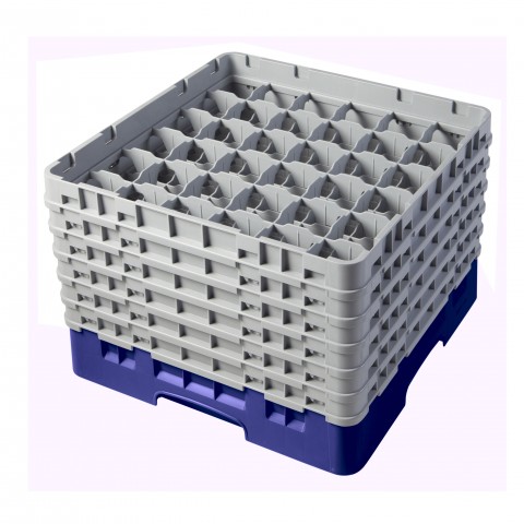 Camrack® Glass Rack, with (6) soft gray extenders, full size, 19-3/4" x 19-3/4" x 13-3/4", (36) compartments, 2-7/8" max. dia., 11-3/4" max. height, navy blue, HACCP compliant, NSF, Made in USA