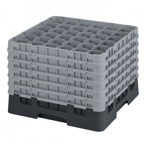 Camrack® Glass Rack, with (6) soft gray extenders, full size, low profile, 19-3/4" x 19-3/4" x 13-3/4", (36) compartments, 2-7/8" max. dia., 12-5/8" max. height, black, HACCP compliant, NSF, Made in USA
