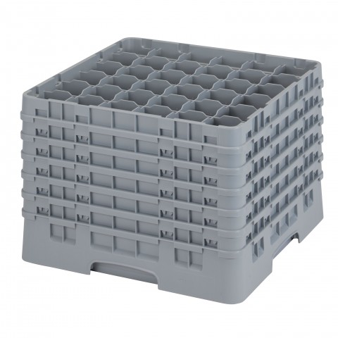 Camrack® Glass Rack, with (6) soft gray extenders, full size, low profile, 19-3/4" x 19-3/4" x 13-3/4", (36) compartments, 2-7/8" max. dia., 12-5/8" max. height, soft gray, HACCP compliant, NSF, Made in USA