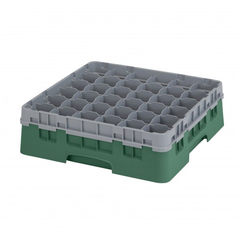 Camrack® Glass Rack, with soft gray extender, full size, low profile, 19-3/4" x 19-3/4" x 5-5/8", (36) compartments, 2-7/8" max. dia., 4-1/2" max. height, Sherwood green, HACCP compliant, NSF