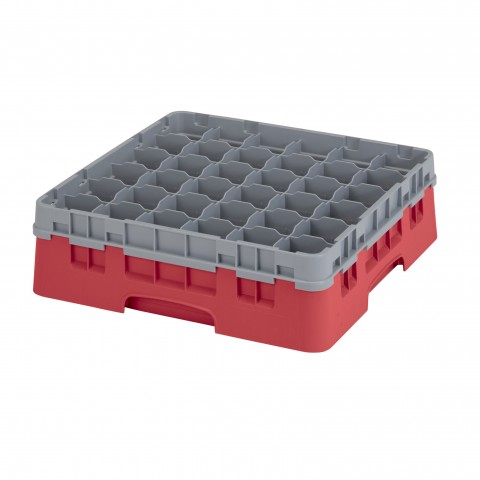 Camrack® Glass Rack, with soft gray extender, full size, low profile, 19-3/4" x 19-3/4" x 5-5/8", (36) compartments, 2-7/8" max. dia., 4-1/2" max. height, red, HACCP compliant, NSF, Made in USA