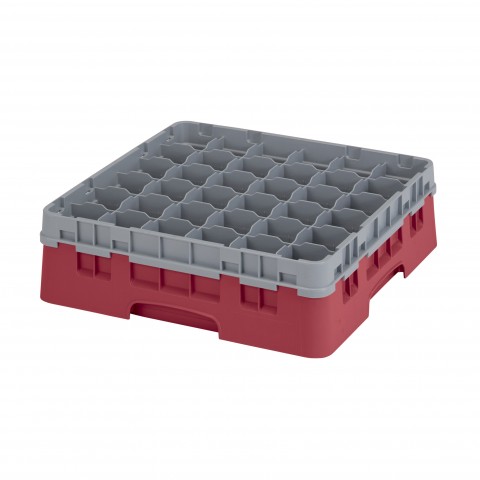 Camrack® Glass Rack, with soft gray extender, full size, low profile, 19-3/4" x 19-3/4" x 5-5/8", (36) compartments, 2-7/8" max. dia., 4-1/2" max. height, cranberry, HACCP compliant, NSF, Made in USA
