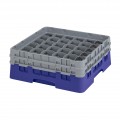 Camrack® Glass Rack, with (2) soft gray extenders, full size, low profile, 19-3/4" x 19-3/4" x 7-1/4", (36) compartments, 2-7/8" max. dia., 5-1/4" max. height, navy blue, HACCP compliant, NSF, Made in USA