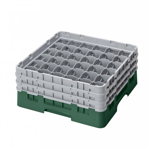 Camrack® Glass Rack, with (3) soft gray extenders, full size, 19-3/4" x 19-3/4" x 8-7/8", (36) compartments, 2-7/8" max. dia., 6-7/8" max. height, Sherwood green, HACCP compliant, NSF, Made in USA