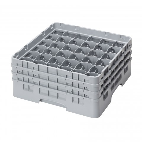Camrack® Glass Rack, with (3) soft gray extenders, full size, 19-3/4" x 19-3/4" x 8-7/8", (36) compartments, 2-7/8" max. dia., 6-7/8" max. height, soft gray, HACCP compliant, NSF, Made in USA