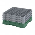 Camrack® Glass Rack, with (3) soft gray extenders, full size, low profile, 19-3/4" x 19-3/4" x 8-7/8", (36) compartments, 2-7/8" max. dia., 7-3/4" max. height, Sherwood green, HACCP compliant, NSF, Made in USA