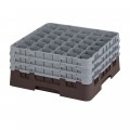 Camrack® Glass Rack, with (3) soft gray extenders, full size, low profile, 19-3/4" x 19-3/4" x 8-7/8", (36) compartments, 2-7/8" max. dia., 7-3/4" max. height, brown, HACCP compliant, NSF, Made in USA