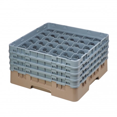 Camrack® Glass Rack, with (4) soft gray extenders, full size, 19-3/4" x 19-3/4" x 10-1/2", (36) compartments, 2-7/8" max. dia., 8-1/2" max. height, beige, HACCP compliant, NSF