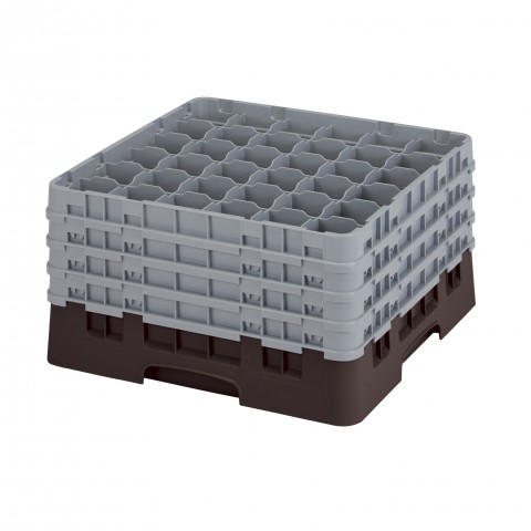 Camrack® Glass Rack, with (4) soft gray extenders, full size, low profile, 19-3/4" x 19-3/4" x 10-1/2", (36) compartments, 2-7/8" max. dia., 9-3/8" max. height, brown, HACCP compliant, NSF