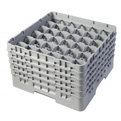 Camrack® Glass Rack, with (5) soft gray extenders, full size, 19-3/4" x 19-3/4" x 12-1/8", (36) compartments, 2-7/8" max. dia., 10-1/8" max. height, soft gray, HACCP compliant, NSF, Made in USA