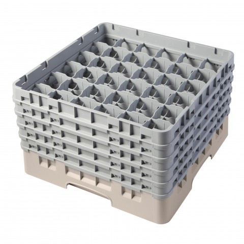 Camrack® Glass Rack, with (5) soft gray extenders, full size, 19-3/4" x 19-3/4" x 12-1/8", (36) compartments, 2-7/8" max. dia., 10-1/8" max. height, beige, HACCP compliant, NSF, Made in USA