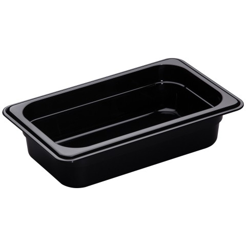H-Pan™ High Heat Hot Food Pan, 1/4 size, 2-1/2" deep, hi-temp plastic, -40°F to 375°F, non-stick surface, won't bend or dent, black, NSF