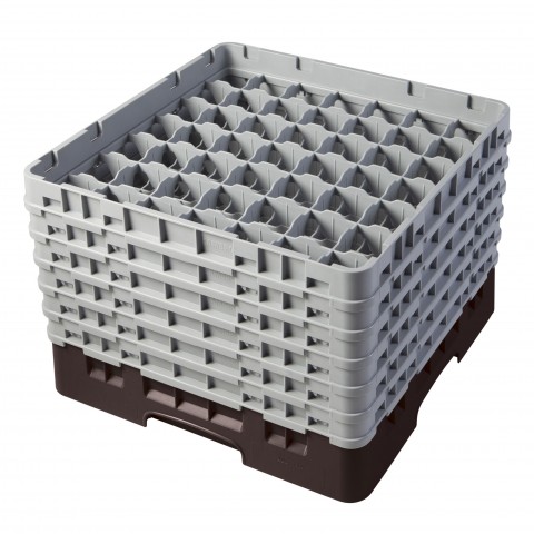 Camrack® Glass Rack, with (6) soft gray extenders, full size, 19-3/4" x 19-3/4" x 13-3/4", (49) compartments, 2-7/16" max. dia., 11-3/4" max. height, brown, HACCP compliant, NSF, Made in USA