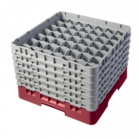 Camrack® Glass Rack, with (6) soft gray extenders, full size, 19-3/4" x 19-3/4" x 13-3/4", (49) compartments, 2-7/16" max. dia., 11-3/4" max. height, cranberry, HACCP compliant, NSF, Made in USA