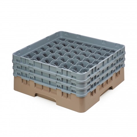 Camrack® Glass Rack, with (3) soft gray extenders, full size, 19-3/4" x 19-3/4" x 8-7/8", (49) compartments, 2-7/16" max. dia., 6-7/8" max. height, beige, HACCP compliant, NSF, Made in USA