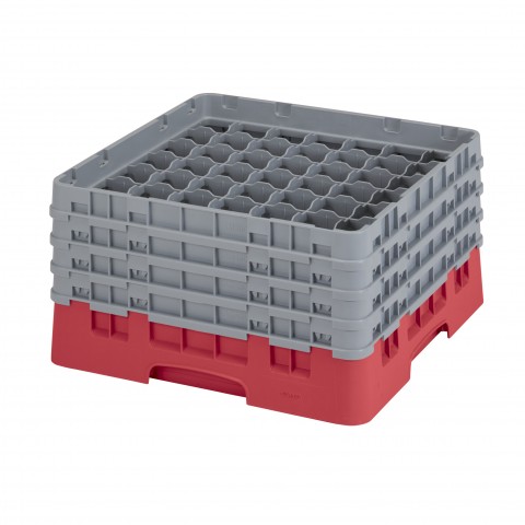 Camrack® Glass Rack, with (4) soft gray extenders, full size, 19-3/4" x 19-3/4" x 10-1/2", (49) compartments, 2-7/16" max. dia., 8-1/2" max. height, red, HACCP compliant, NSF