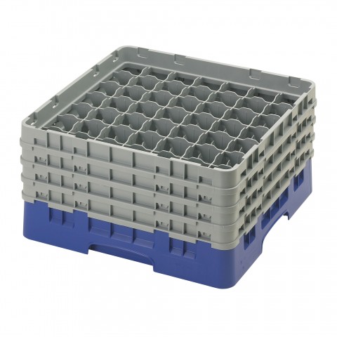 Camrack® Glass Rack, with (4) soft gray extenders, full size, 19-3/4" x 19-3/4" x 10-1/2", (49) compartments, 2-7/16" max. dia., 8-1/2" max. height, navy blue, HACCP compliant, NSF, Made in USA
