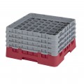 Camrack® Glass Rack, with (4) soft gray extenders, full size, 19-3/4" x 19-3/4" x 10-1/2", (49) compartments, 2-7/16" max. dia., 8-1/2" max. height, cranberry, HACCP compliant, NSF, Made in USA