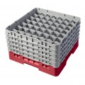 Camrack® Glass Rack, with (5) soft gray extenders, full size, 19-3/4" x 19-3/4" x 12-1/8", (49) compartments, 2-7/16" max. dia., 10-1/8" max. height, red, HACCP compliant, NSF, Made in USA