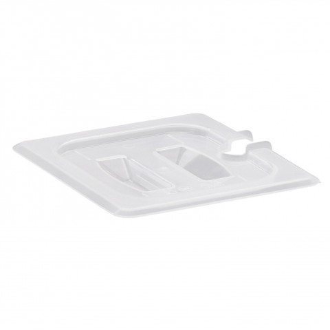 Food Pan Cover, 1/6 size, notched, with handle, polypropylene, translucent, NSF