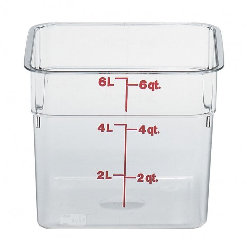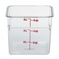 CamSquare® Food Container, 6 qt., 8-3/8"L x 8-3/8"W x 7-1/4"H, red graduation, polycarbonate, dishwasher safe, resists stains & odors, clear, NSF