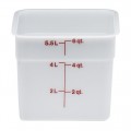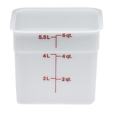 CamSquare® Food Container, 6 qt., 8-3/8"L x 8-3/8"W x 7-1/4"H, red graduation, polyethylene, dishwasher safe, resists stains & odors, natural white, NSF