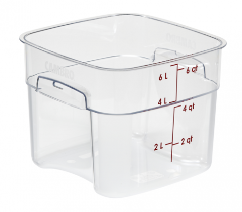 CamSquare® FreshPro Food Container, 6 qt., 9"L x 9"W x 7-1/10"H, red graduation, polycarbonate, dishwasher safe, resists stains & odors, clear, NSF