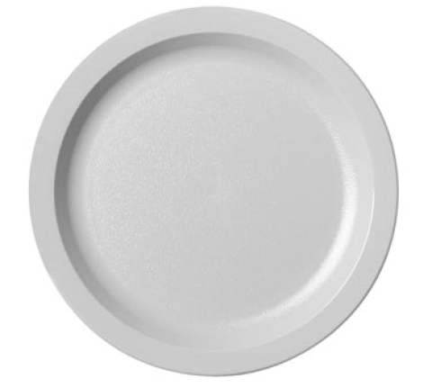 Camwear® Plate, 8-1/4" dia., narrow rim, non-porous surface, smooth glossy finish, scratch resistant, textured surface, polycarbonate, white, NSF
