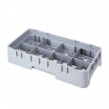 Camrack® Cup Rack, half size, 9-7/8" x 19-3/4" x 4", (8) compartments, 4-1/8" x 4-3/8", 2-5/8" max. height, soft gray, HACCP compliant, NSF, Made in USA