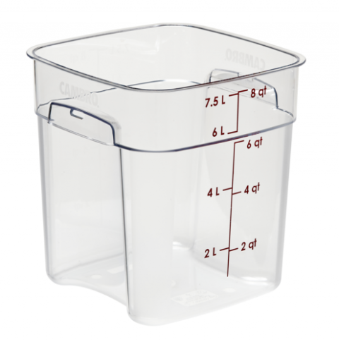 CamSquare® FreshPro Food Container, 8 qt., 9"L x 9"W x 9-3/5"H, red graduation, polycarbonate, dishwasher safe, resists stains & odors, clear, NSF