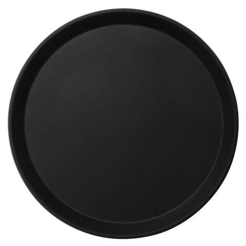 Camtread® Serving Tray, round, 9" dia., dishwasher safe, fiberglass with non-skid surface, black satin, NSF, Made in USA