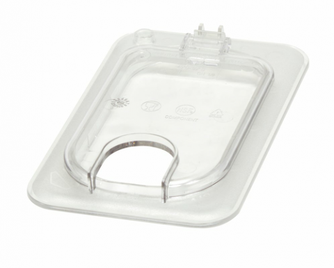 Camwear® FlipLid® Food Pan Cover, 1/9 size, notched, hinged, polycarbonate, clear, NSF