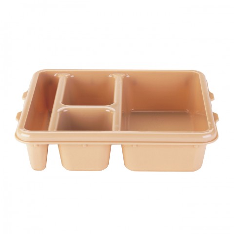 Meal Delivery Camwear® Tray, 4-compartment, with flatware compartment, 9" x 11 x 2-11/16", textured surface, dishwasher safe, polycarbonate, beige, NSF