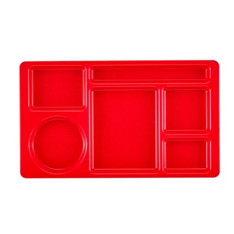 Camwear® 2 x 2 Compartment Tray, 6-compartment, rectangular, 8-3/4" x 15", Camwear® polycarbonate, dishwasher safe, red, Ecosafe, NSF, Made in USA
