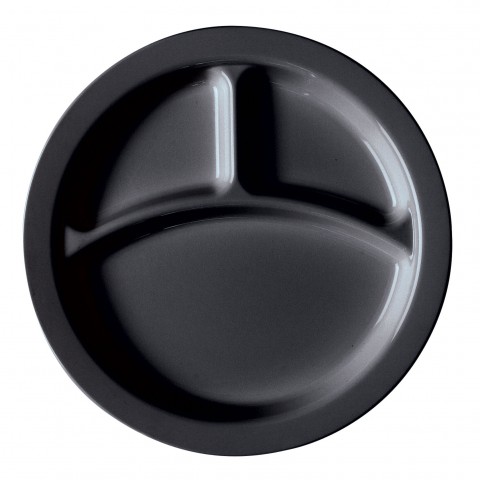 Camwear® Plate, 9" dia., 3-compartment, narrow rim, non-porous surface, smooth glossy finish, scratch resistant, textured surface, polycarbonate, black, NSF