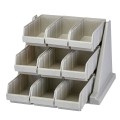 Versa Organizer Rack, with (9) bins, 20-1/8"L x 21-3/8"D x 14-1/4"H, can be wall-mounted (each bin can hold up to 10 lbs.) or placed on flat surface, polyethylene, speckled gray, Made in USA