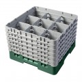 Camrack® Glass Rack, with (6) soft gray extenders, full size, 19-3/4" x 19-3/4" x 13-3/4", (9) compartments, 5-7/8" max. dia., 11-3/4" max. height, Sherwood green, HACCP compliant, NSF