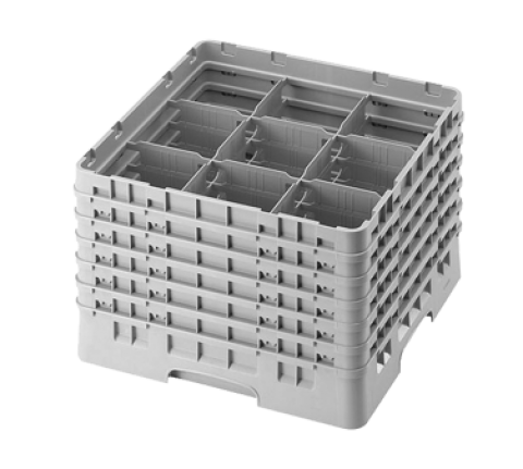 Camrack® Glass Rack, with (6) soft gray extenders, full size, 19-3/4" x 19-3/4" x 13-3/4", (9) compartments, 5-7/8" max. dia., 11-3/4" max. height, soft gray, HACCP compliant, NSF