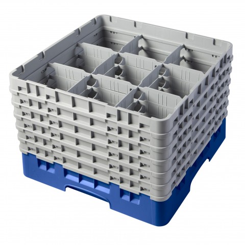 Camrack® Glass Rack, with (6) soft gray extenders, full size, 19-3/4" x 19-3/4" x 13-3/4", (9) compartments, 5-7/8" max. dia., 11-3/4" max. height, blue, HACCP compliant, NSF