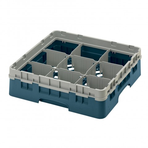 Camrack® Glass Rack, with soft gray extender, full size, 19-3/4" x 19-3/4" x 5-5/8", (9) compartments, 5-7/8" max. dia., 3-5/8" max. height, teal, HACCP compliant, NSF, Made in USA