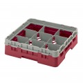 Camrack® Glass Rack, with soft gray extender, full size, 19-3/4" x 19-3/4" x 5-5/8", (9) compartments, 5-7/8" max. dia., 3-5/8" max. height, cranberry, HACCP compliant, NSF, Made in USA