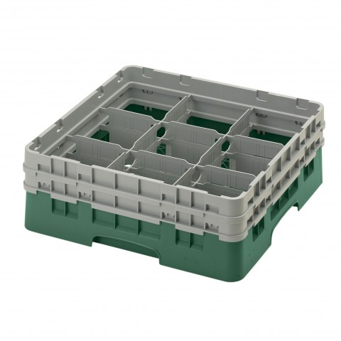 Camrack® Glass Rack, with (2) soft gray extenders, full size, 19-3/4" x 19-3/4" x 7-1/4", (9) compartments, 5-7/8" max. dia., 5-1/4" max. height, Sherwood green, HACCP compliant, NSF, Made in USA