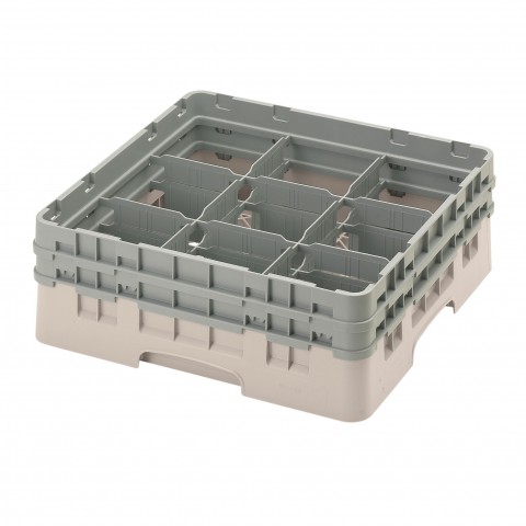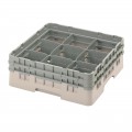 Camrack® Glass Rack, with (2) soft gray extenders, full size, 19-3/4" x 19-3/4" x 7-1/4", (9) compartments, 5-7/8" max. dia., 5-1/4" max. height, beige, HACCP compliant, NSF, Made in USA
